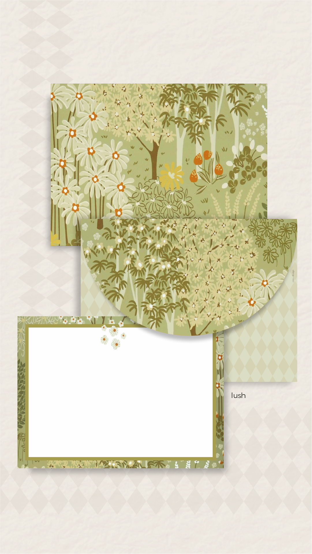 A blooming garden of daisies and wildflowers in soft greens — ideal for seasonal wishes, eco-luxe gifts, or fresh everyday notes.