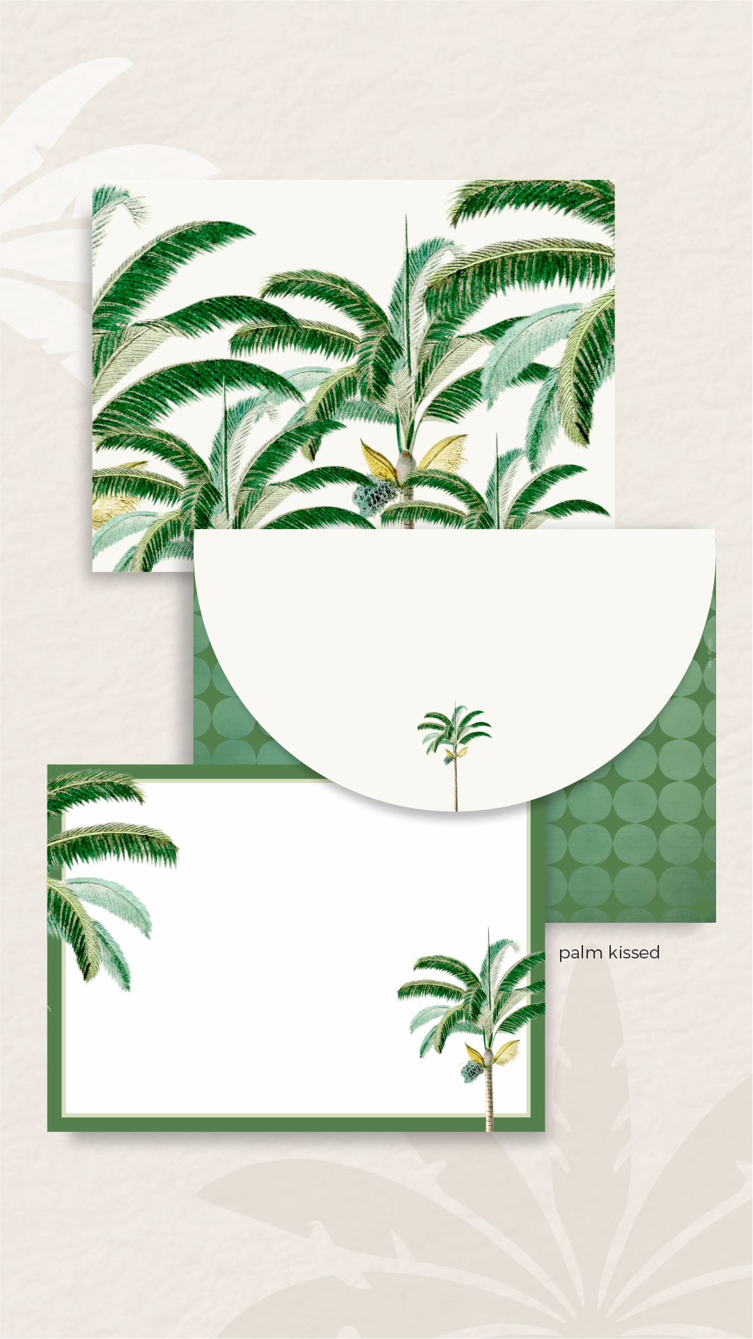 A canopy of lush palms brings this envelope to life. Designed for warm wishes, destination-themed events, or everyday tropical flair.