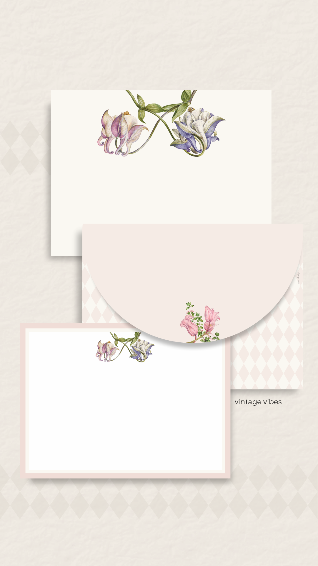 Soft floral stems and antique pastel tones make this a dreamy pick for wedding notes, baby showers, or vintage-inspired messages. Understated elegance in every fold.